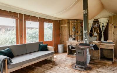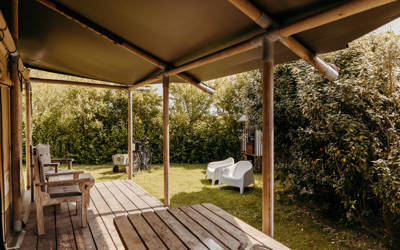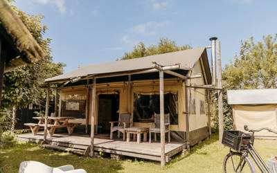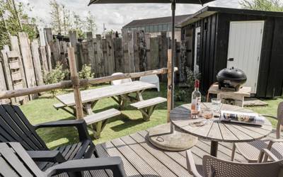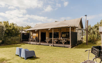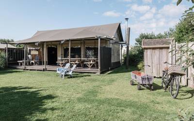 Die Lodges, Tipis und Hütten haben alle einen eigenen Außenbereich, wo Sie sich in der Sonne entspannen können. Alle Küchen sind komplett ausgestattet, inklusive Weingläsern und einer Flasche Willkommenswein. Wenn Sie im Ort einkaufen wollen, können Sie sich auf Ihr eigenes Sun Sea Beach Fahrrad schwingen. Und für die Kinder haben wir zwei große Spielplätze mit Sandkasten, Fußballplatz und Spielhaus.
