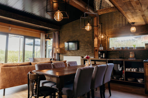 Im Inneren befindet sich auf der linken Seite die Küchenzeile, in der Sie ganz einfach ein leckeres Urlaubsessen zubereiten können. Die Küche ist der Essbereich, in dem gemütlich gegessen werden kann. Neben der Küche befindet sich das Wohnzimmer mit reichlich Sitzgelegenheiten.